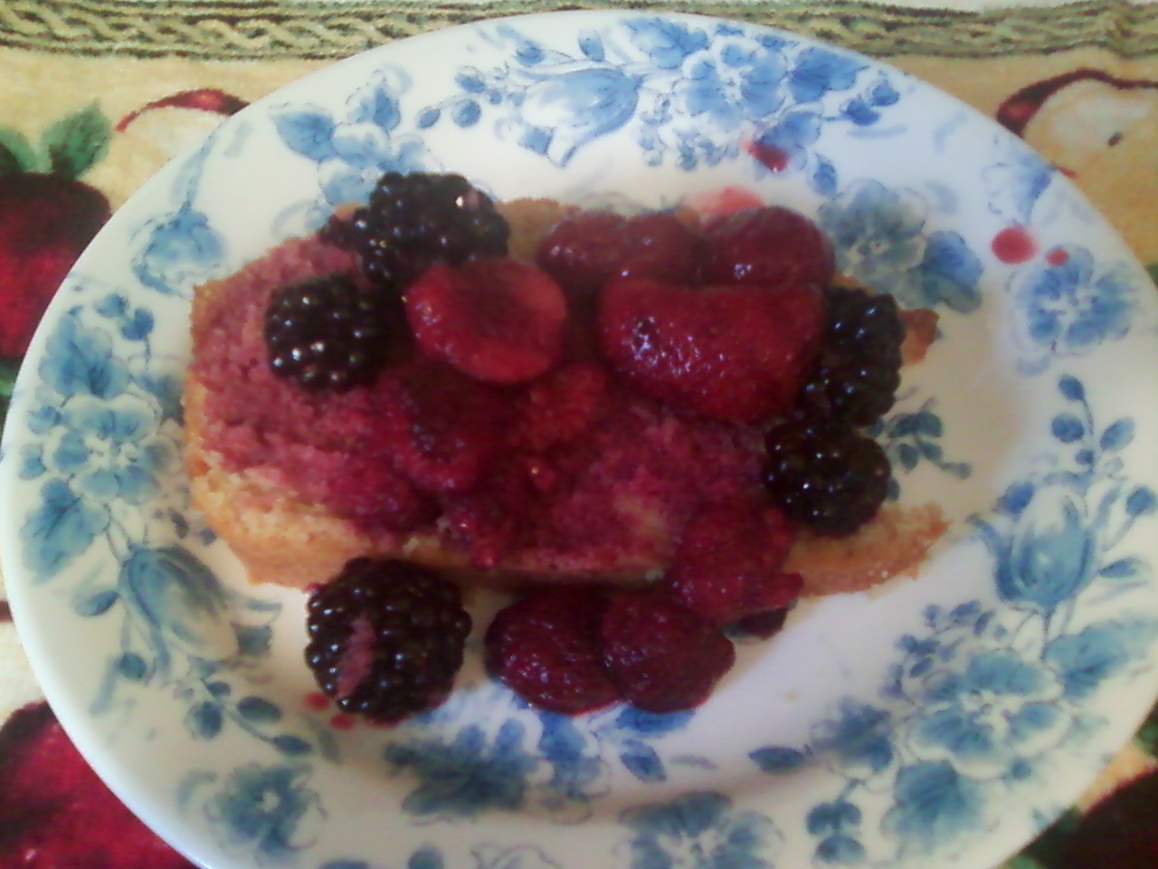 So delicious and pretty! I served mine with some frozen fruit that I defrosted in the microwave that gave off a sweet sauce that the pound cake just soaked right up! It was sweet, savory, and tart (thanks to the fruit!) all at once and made for a perfect dessert! Enjoy!